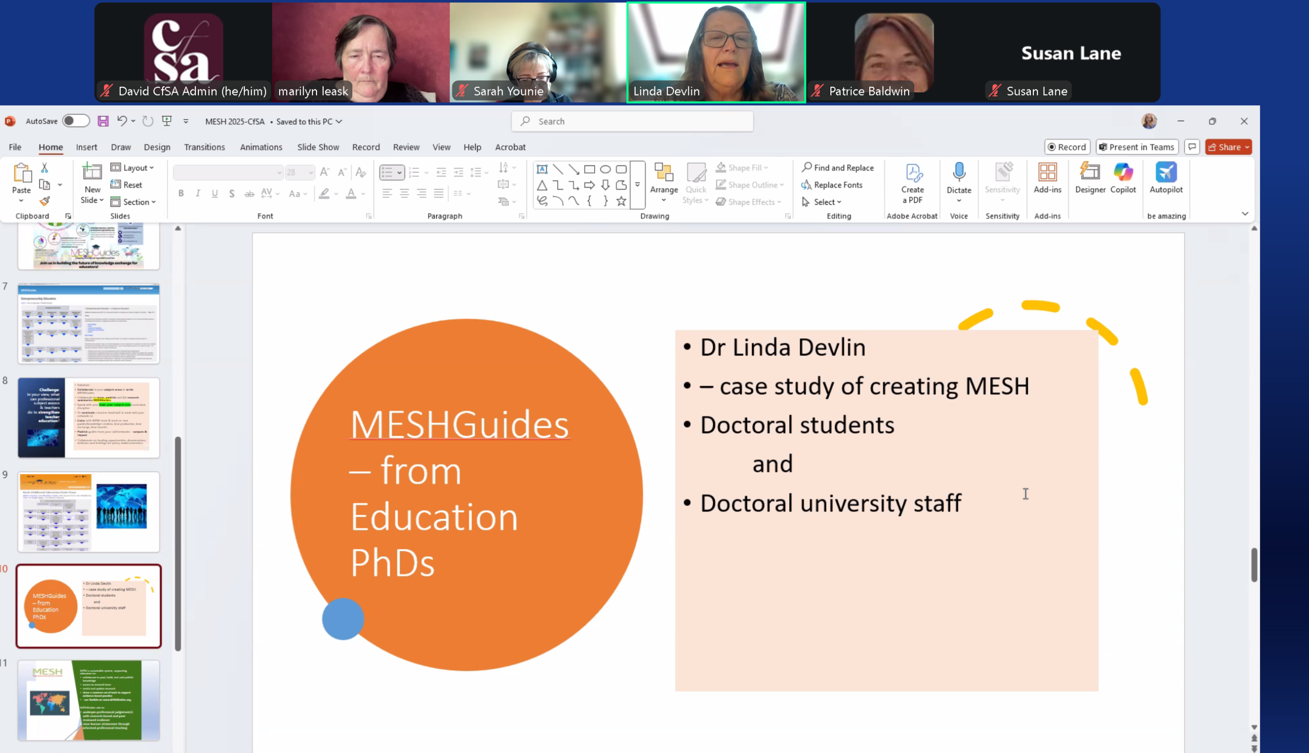 Linda Devlin highlighted the untapped potential of educational research: “We have hundreds of doctoral students across the country. Their work is not necessarily shared very widely… the MESH guides with them as a way of sharing the outcomes from their doctoral study.”